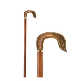 Elegante stok dat helpt mensen met beperkte mobiliteit. Deze stok heeft een formaat van gevarieerd olijfhout en een handvat in de vorm van dieren.