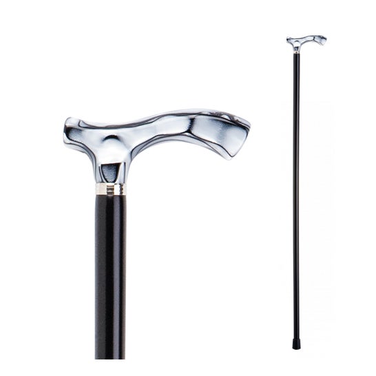 Hulpmiddel met een houten stok die personen met beperkte mobiliteit helpt. Het formaat is verstelbaar en heeft een handvat van compacte methacrylaat versierd met kleuren.