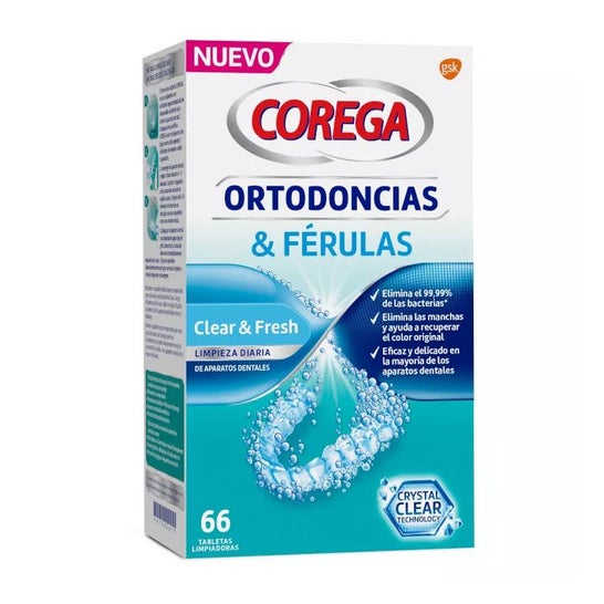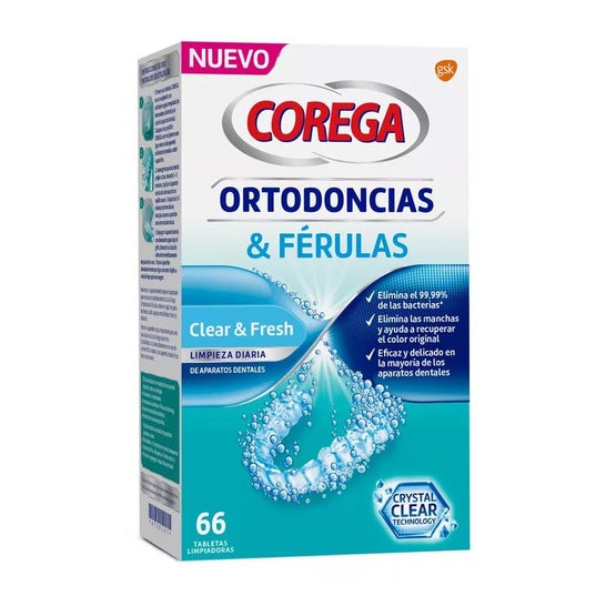 Corega Orthodontics & Splints 66 stuks zijn dagelijkse antibacteriële reinigingstabletten ontwikkeld met Crystal Clear-technologie om uw beugel er op zijn best uit te laten zien.