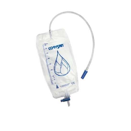 Corysan Urinezak voor het Been 750 ml 30 stuks voor het verzamelen van urine overdag is een zak voor het verzamelen van urine voor dagelijks gebruik, bedoeld voor mensen met urinaire incontinentie, beperkte mobiliteit of in herstel na een operatie.