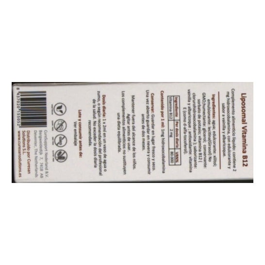Vloeibaar voedingssupplement geformuleerd met vitamine B12. Bevordert normale fysieke en psychologische prestaties. Vitamine B12 speelt een positieve rol in het energiemetabolisme. Geschikt voor volwassenen.