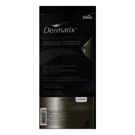 Dermatix-siliconenplaten zijn gemaakt met siliconen en teflon. Het heeft een zijdeachtig huidkleurig oppervlak en een zelfklevende achterkant . Het heeft een hoge tolerantie, zodat het kan worden gebruikt door kinderen en mensen met een gevoelige huid.