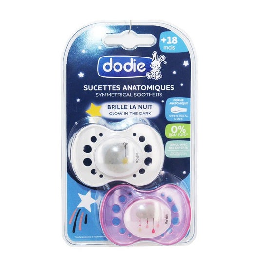 Set van twee fopspenen geschikt voor baby's ouder dan 18 maanden, gemaakt met 0% BPA en met een ergonomisch ontwerp aangepast aan de mond van de baby. De collectie is verkrijgbaar in verschillende kleurencombinaties, deze in roze en wit. *De kleur en het ontwerp van het product kunnen variëren, afhankelijk van de beschikbaarheid.
