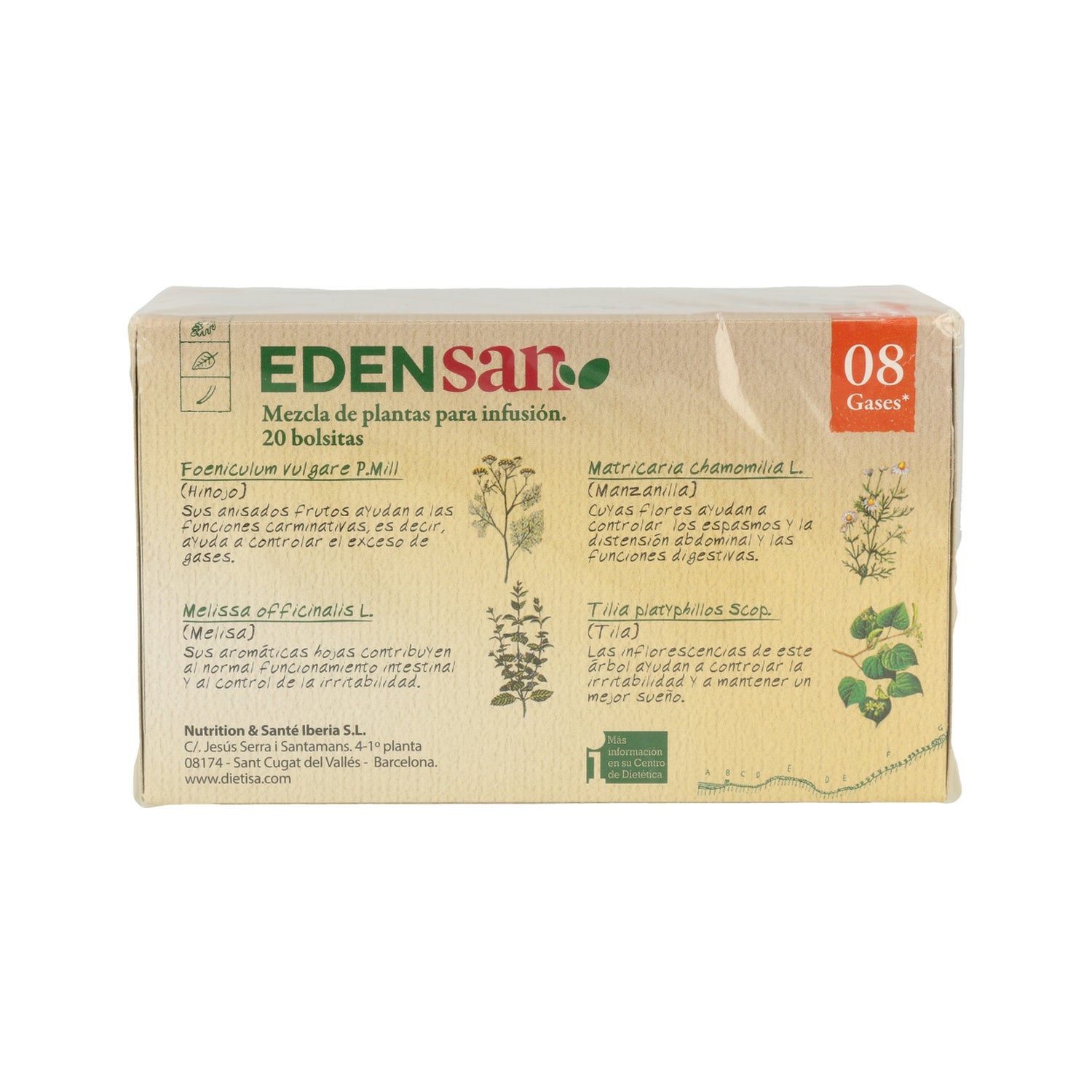 Voedingssupplement op basis van een mengsel van kruiden voor infusie, dat helpt bij het bevorderen van de controle over gasvorming en rust. Het creëert de afvoer van gassen en kalmte. Het is samengesteld uit de volgende kruiden: