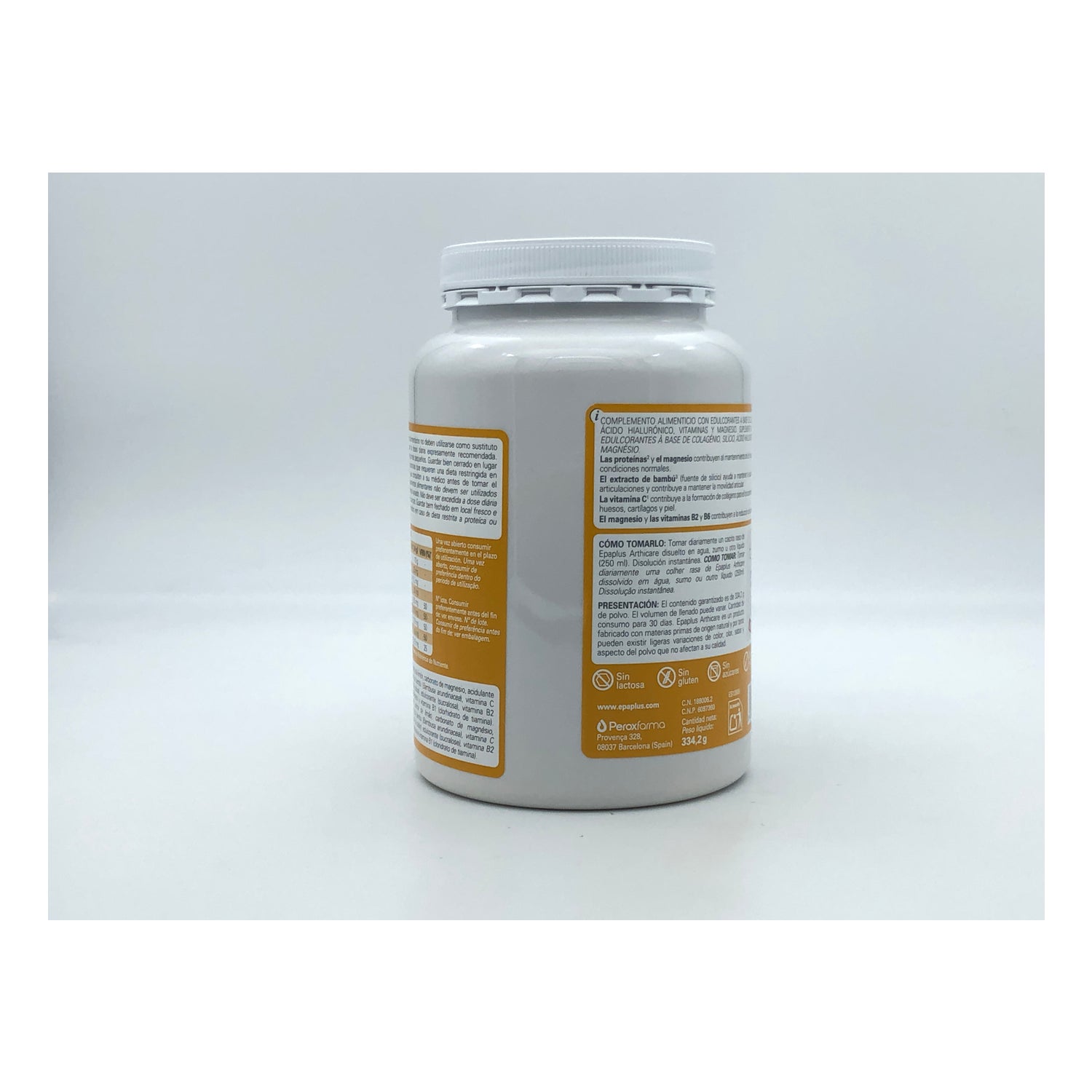Epaplus Arthicare Gewrichten Collageen Antiox Citroen 331g is een voedingssupplement dat speciaal is ontworpen om de gewrichten te verzorgen, op basis van gehydrolyseerd collageen, silicium (uit bamboe-extract), hyaluronzuur, magnesium, vitamine C, vitamine E en de vitamines B1, B2 en B6.