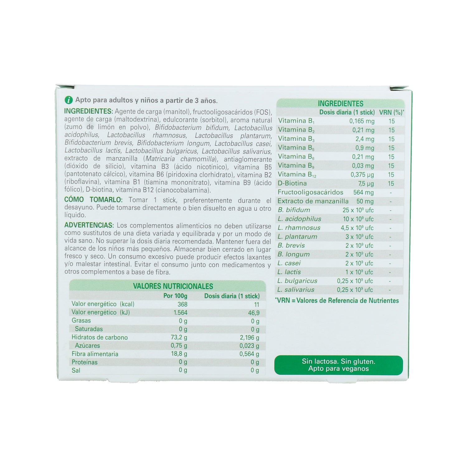 Een voedingssupplement om de darmflora te helpen versterken. Gemaakt met zoetstoffen op basis van melkfermenten, FOS, kamille en vitaminen. Het gehalte aan kamille helpt het maagdarmstelsel gezond te houden. Geschikt voor volwassenen en kinderen.