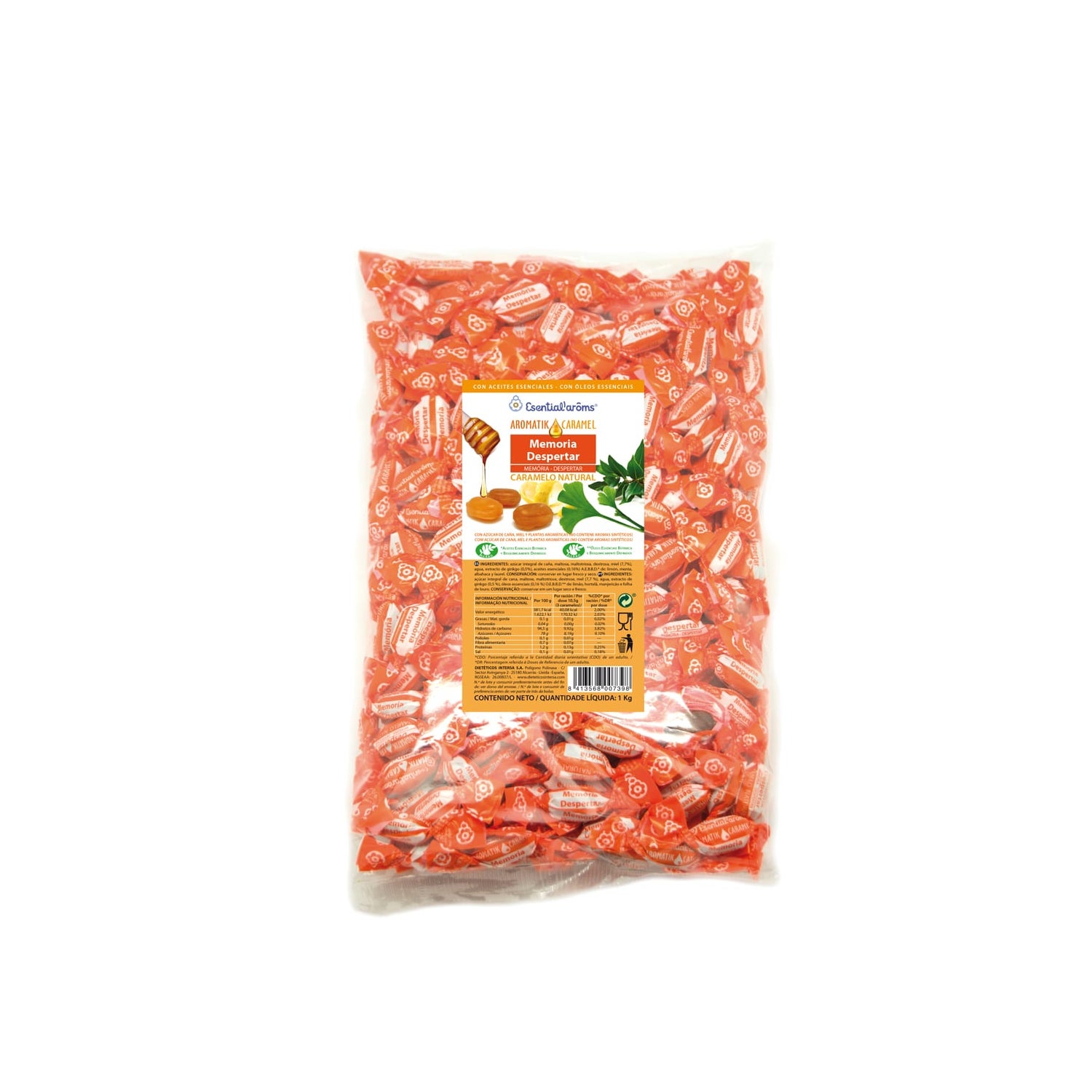 Esential'Arôms Aromatik Caramel Memoria Despertar 1kg is een natuurlijk product ontworpen om de concentratie en het geheugen te verbeteren. Deze ecologische snoepjes zijn geformuleerd om de mentale behendigheid te stimuleren op het werk, bij het studeren of in elke situatie die extra aandacht vereist.