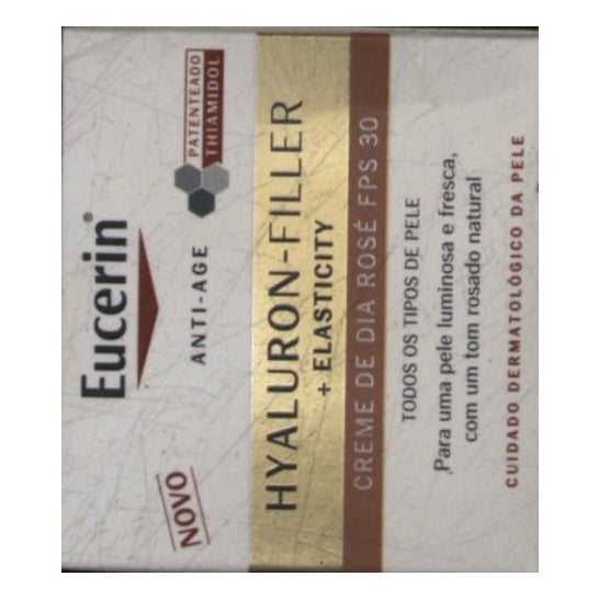 Eucerin Hyaluron Filler + Elasticity Day Cream Rosé SPF30 50ml is een roze getinte dagcrème met SPF30 fotoprotectie, ontworpen voor de rijpere huid.