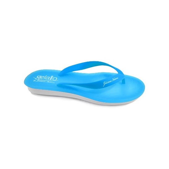 Gelato Arcobaleno Chancla Vrouw Lichtblauw Maat 37-38 1 Paar is de perfecte optie voor de verzorging en het comfort van de voeten thuis. Ontworpen door FARGEOT & CIE, is deze slipper licht en flexibel, en past zich aan de vrouwelijke anatomie aan om ondersteuning te bieden bij elke stap.