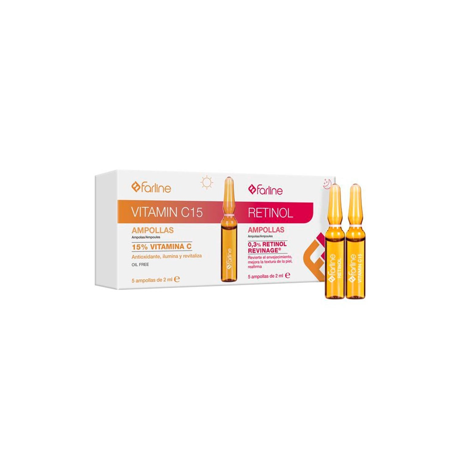 Gezichtsbehandeling met antivermoeidheidseffect voor de verzorging van de gevoelige gezichtshuid. Helpt het gezicht te verhelderen en beschermt tegen de schadelijke effecten van vrije radicalen. Het bevat 5 ampullen met 15% pure vitamine C, die het huidweefsel helpen regenereren en de antioxidantbescherming versterken. Het bevat ook 5 ampullen met retinol, die de celvernieuwing en hydratatie bevorderen. Met een snel absorberende textuur die geen vettig gevoel achterlaat. Geschikt voor alle huidtypes. Gepresenteerd in een doosje met 10 ampullen van elk 2 ml. Dermatologisch getest.