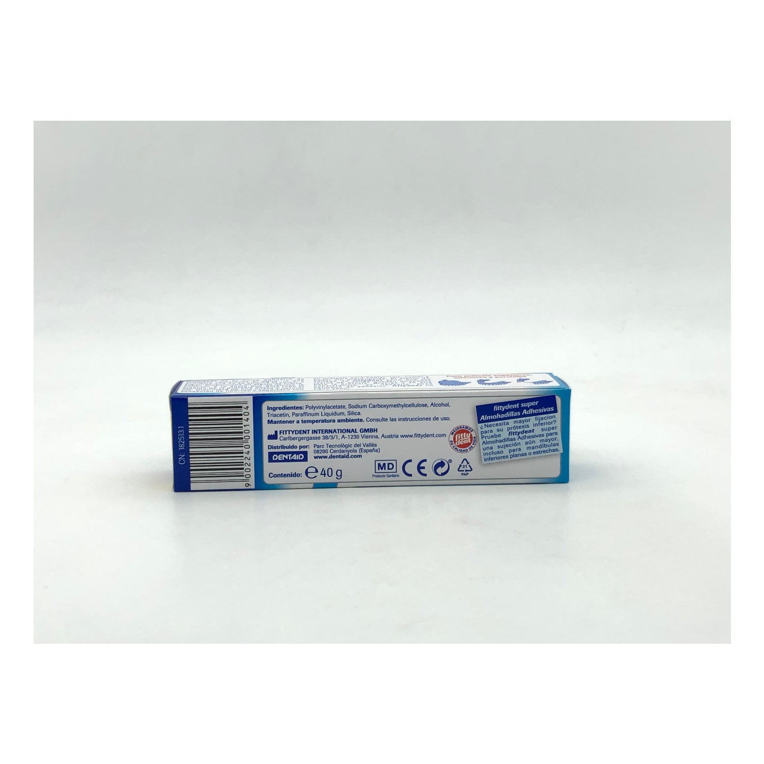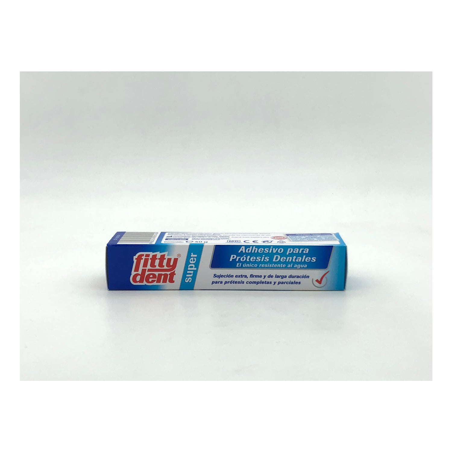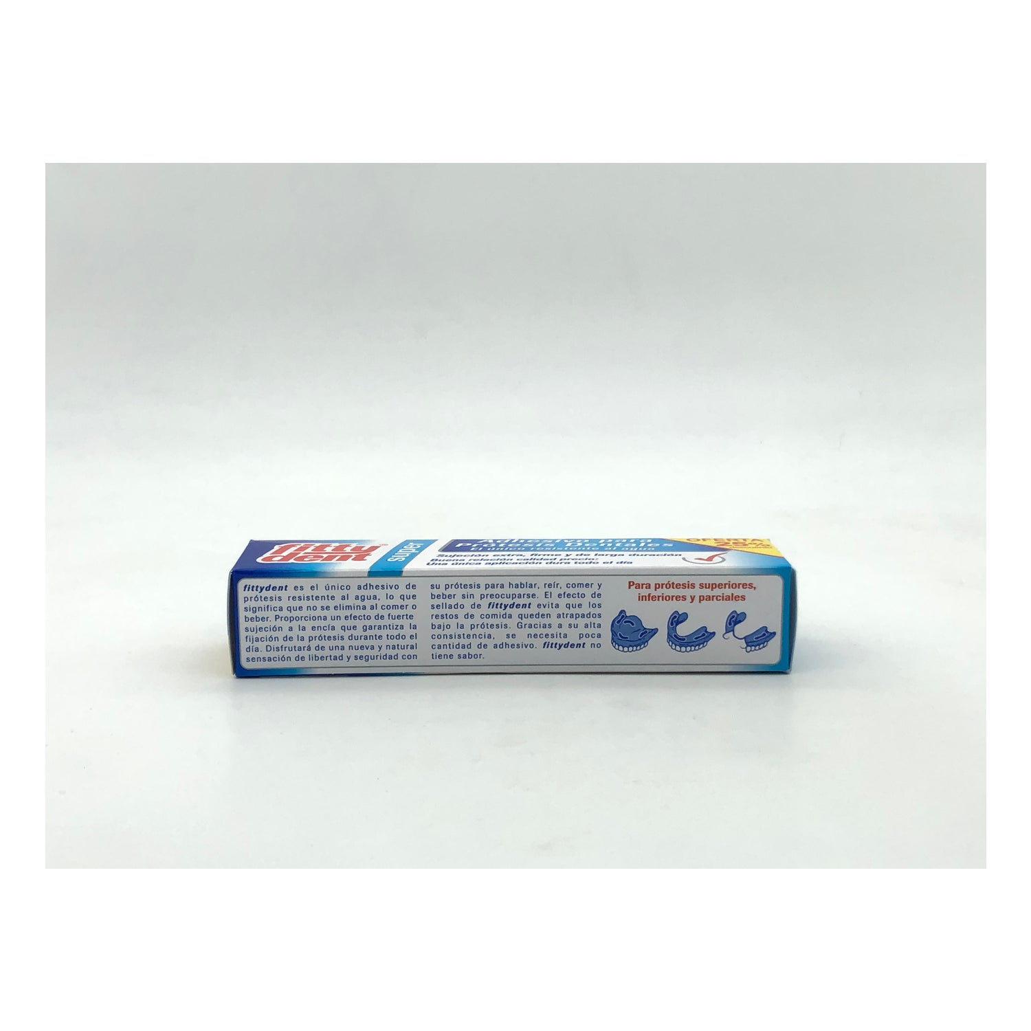 Deze lijm is bestand tegen water, koude en hete vloeistoffen en biedt een sterke fixatie tot 12 uur . Het afdichtende effect van de Fittydent-superkleefprothese voorkomt dat zich voedselresten onder de prothese ophopen, waardoor bacterievorming wordt voorkomen.
