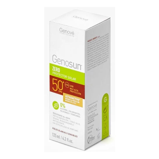 Genosun Zero Zonnebrand SPF50+ Spray 125ml is een product dat is ontworpen om zeer hoge zonnebescherming te bieden. De formulering bevat zeewierextract en kenmerkt zich door het ontbreken van: