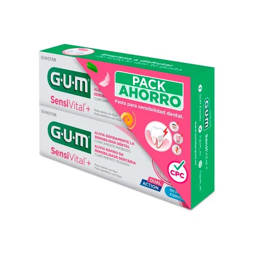 Gum Sensivital Tandpasta 2x75 ml is een pack van twee tandpasta's van 75 ml, geschikt voor volwassenen en kinderen ouder dan 7 jaar. Het helpt de tandgevoeligheid te verminderen die wordt veroorzaakt door koude, warme, zoete of zure voedingsmiddelen. Het biedt een zachte textuur en muntsmaak.