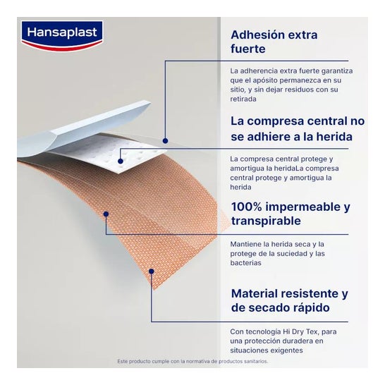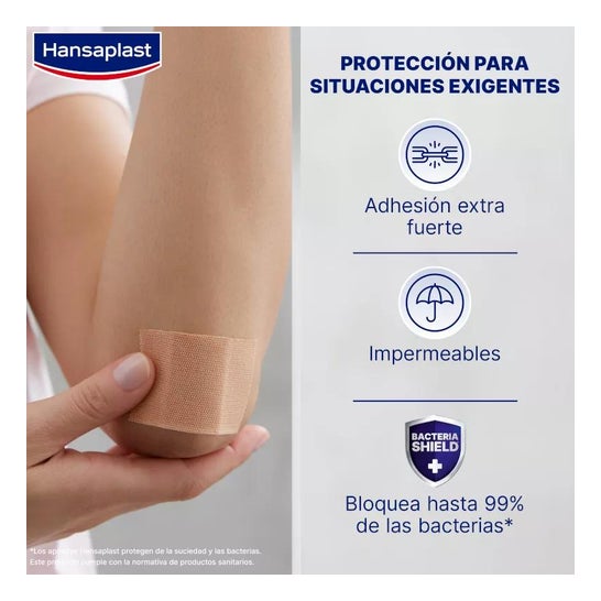 Hansaplast Extra sterke zelfklevende verbanden beschermen uw wonden in meer veeleisende situaties (onder water, buitenactiviteiten ...) dankzij de hoge hechting en weerstand.