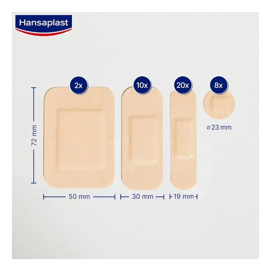 Hansaplast Universal Dressings 4 Sizes 40 stuks zijn verbanden in verschillende maten, geschikt voor het bedekken en beschermen van kleine wondjes.