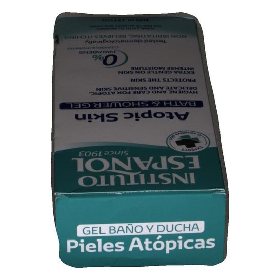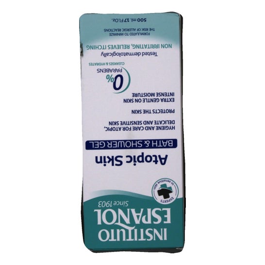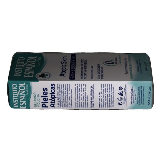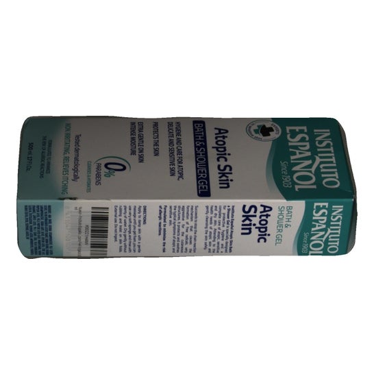 De badgel voor Aiatope huid van het Spaanse Instituut , is geïndiceerd om een beschermende en hygiënische werking te geven tijdens de douche voor alle gevoelige huid, droge of atopische tendens.
