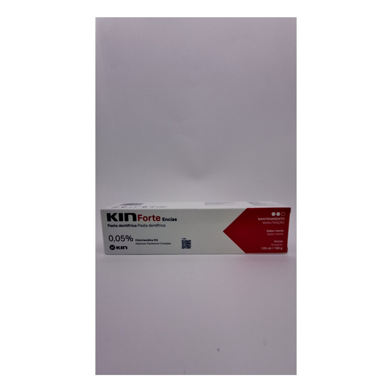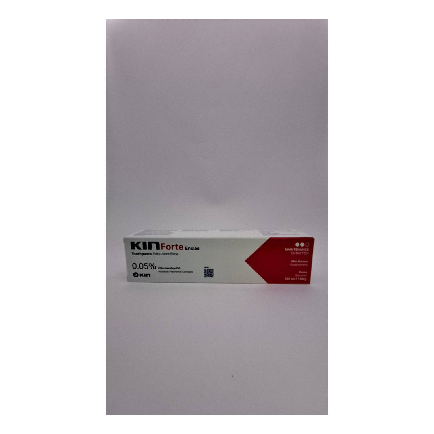 Kin forte tand tandpasta is geïndiceerd voor de behandeling van gingivitis en parodontitis . Preventie van cariës en ontsteking van het tandvlees. Parodontale voor- en nabehandeling, bij patiënten met slechte plaque controle. De formulering van chloorhexidinedigluconaat (0,05%), triclosan (0,30%) en zinkcitraat (0,50%) vermindert tandvleesbloeding en remt de accumulatie van tandplak. Dankzij het fluorgehalte en de lage abrasiviteit beschermt het het tandglazuur.