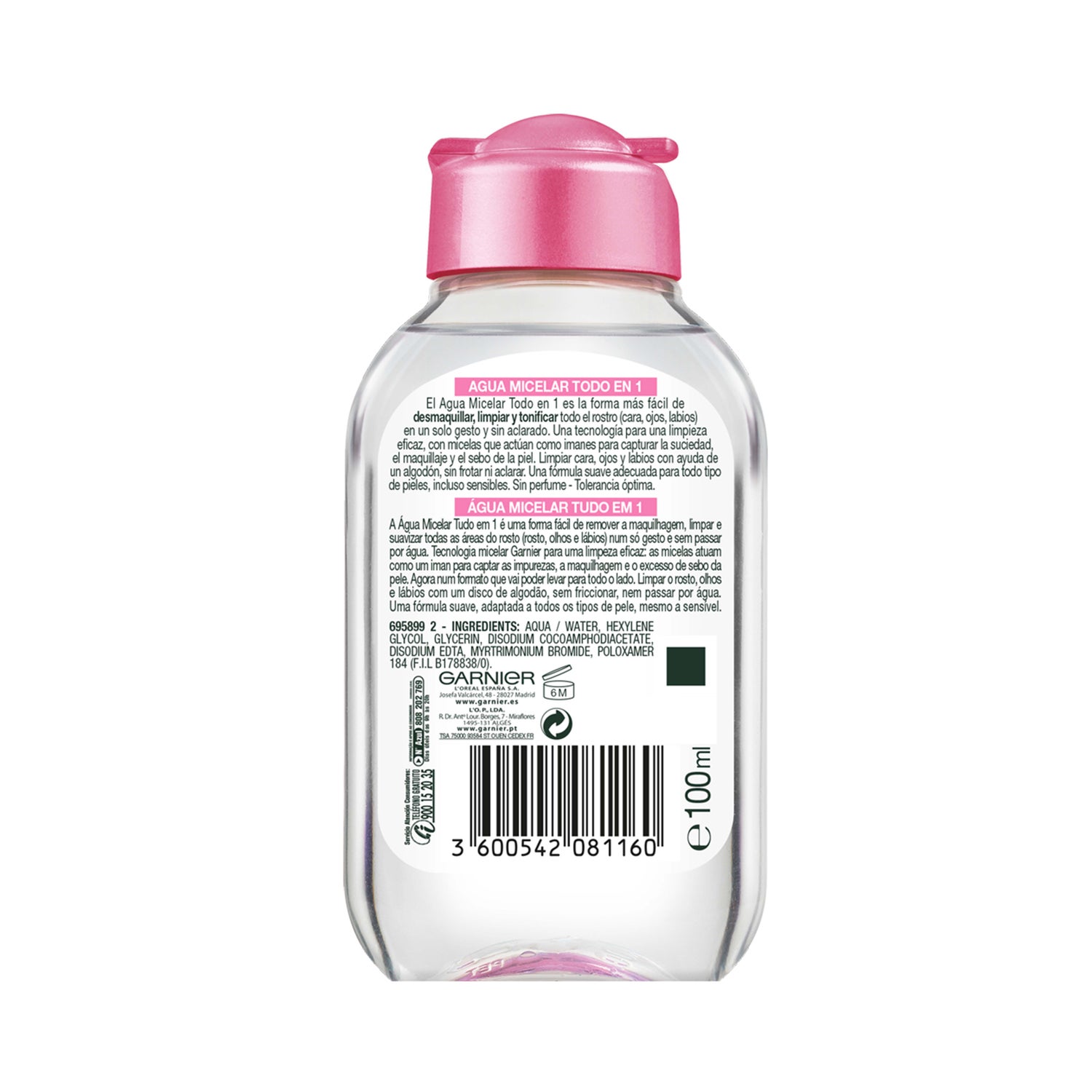 L'oreal Skin Active Micellair Water Voor Alle Huidtypes 100ml is een product van Garnier dat een complete oplossing biedt voor het verwijderen van make-up, het reinigen en het verzachten van het gezicht op een snelle manier zonder spoelen. Dit micellair water is ontworpen voor gebruik op het gezicht, de ogen en de lippen. De formule bevat micellen, technologie die ook in farmaceutische producten voorkomt, die als magneten werken en vuil en make-up aantrekken zonder dat je de huid hoeft te wrijven. Het is geschikt voor alle huidtypes en bevat geen parfum of parabenen. Dit micellair water is dermatologisch en oftalmologisch getest om de veiligheid te waarborgen. Het komt in een praktische verpakking van 100ml, ideaal om mee te nemen tijdens het reizen.