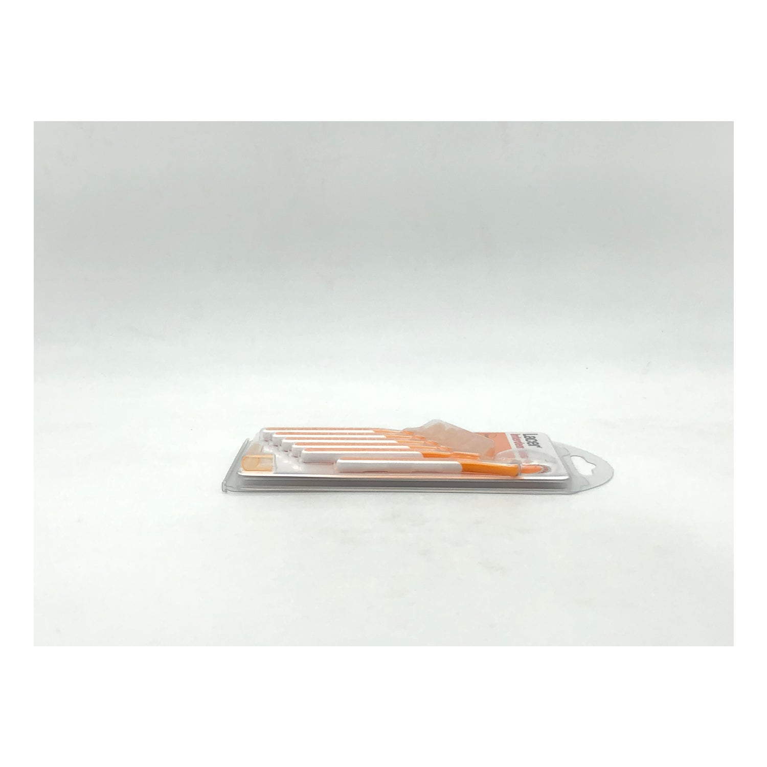 Het handvat, dat een hoge flexibiliteit heeft, maakt het mogelijk om de meest geschikte hoek te vormen en het schoonmaken van elke interdentale ruimte te vergemakkelijken. Inclusief een beschermkap om de juiste poetshygiëne te behouden.