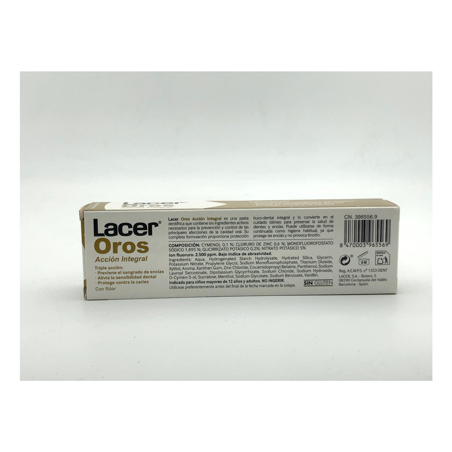 Deze tandpasta combineert een complete behandeling om een effectieve mondgezondheid te bereiken , vooral bij mensen die last hebben van tandvleesaandoeningen. Dankzij de antiseptische en samentrekkende formule, wordt Lacer Oros-tandpasta aanbevolen voor gevallen van beginnende gingivitis .