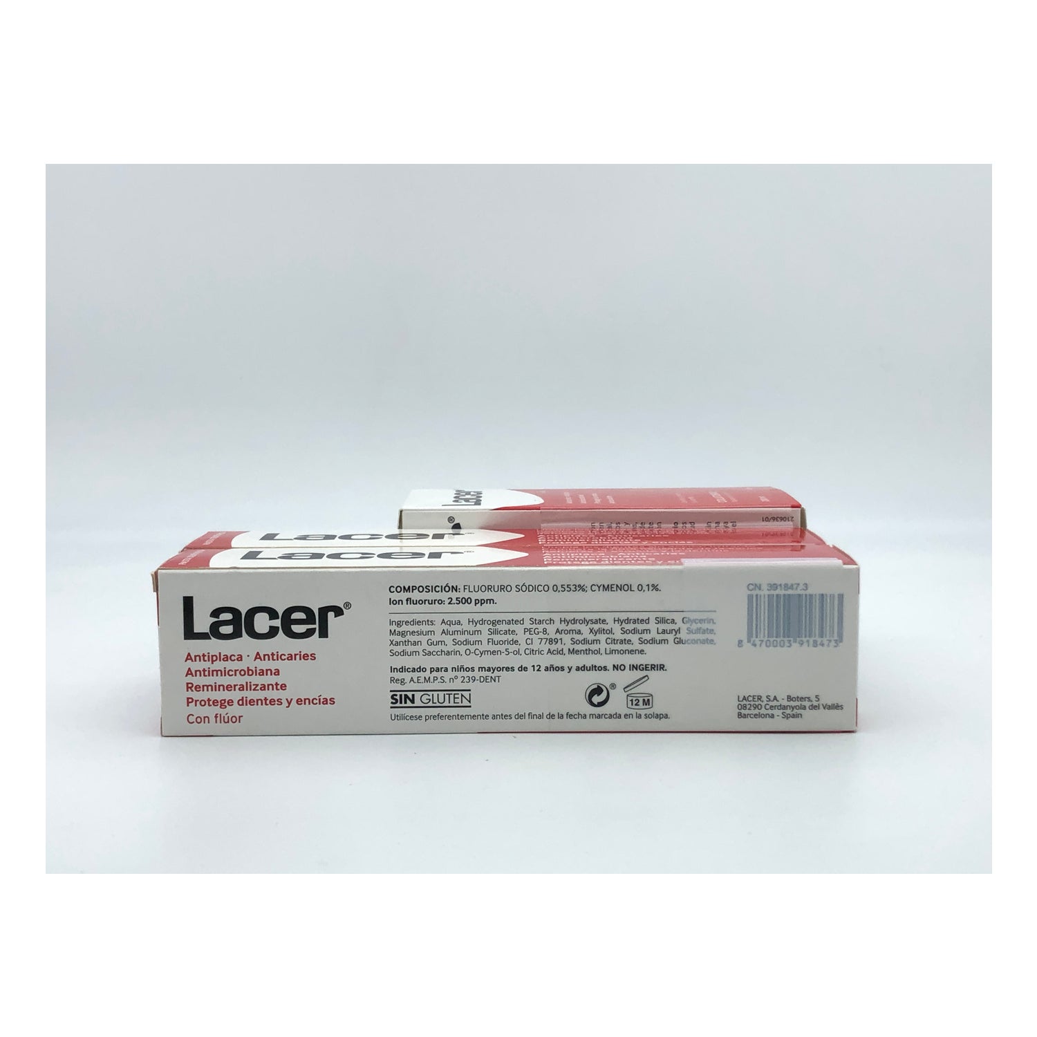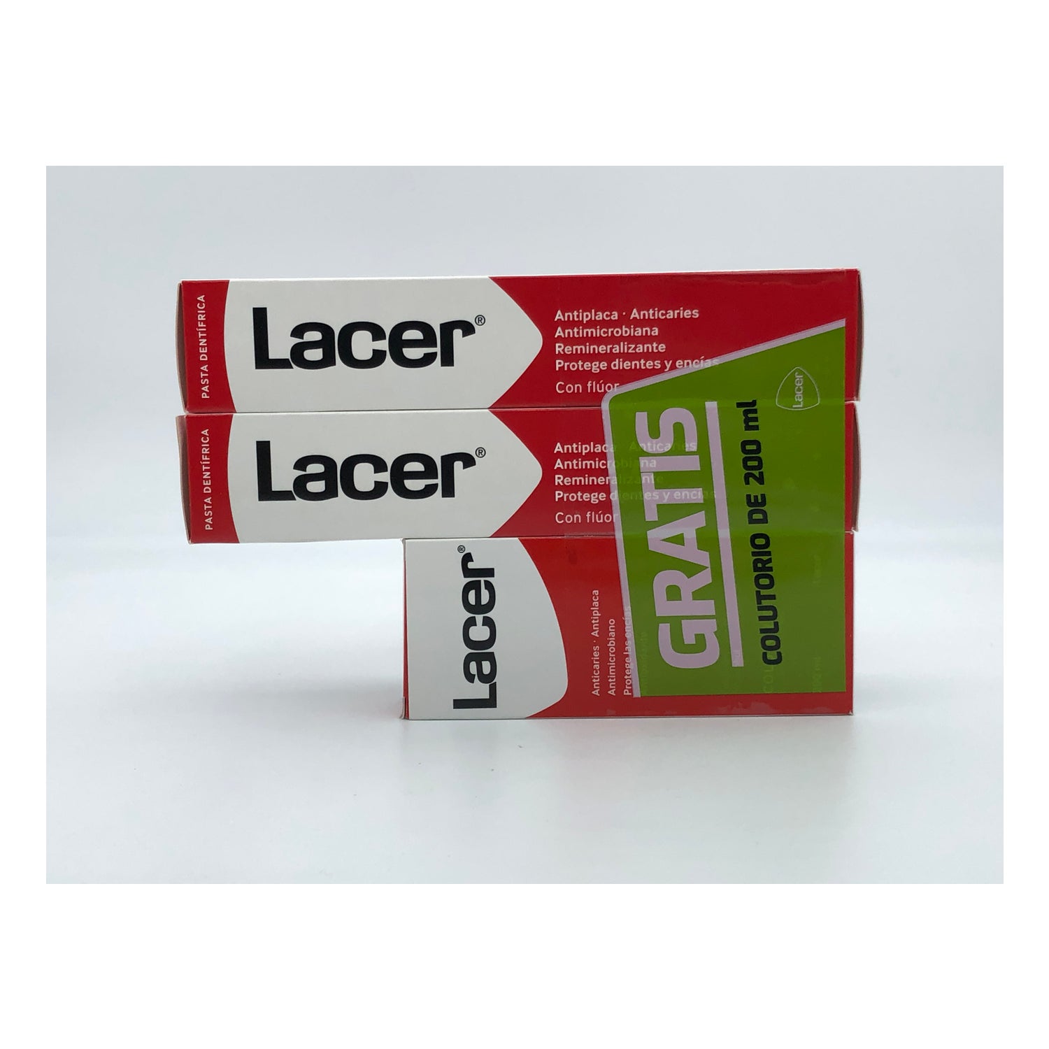 Bevat 2 Anti-plaque Tandpasta's 125ml + Lacer Mondwater 200ml als cadeau. Geschikt voor wie op zoek is naar een complete mondreiniging.