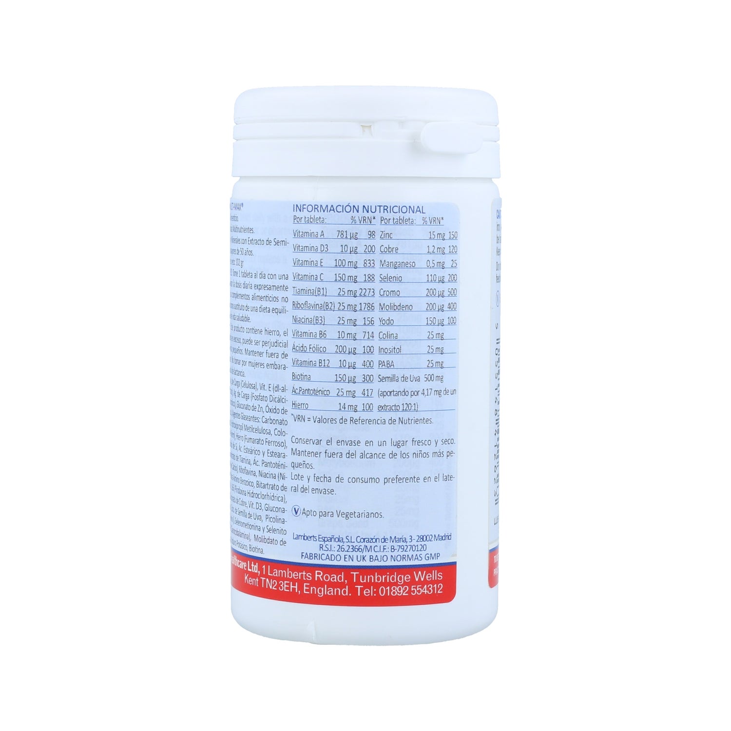 Voedingssupplement in tabletvorm, gemaakt met een vitamine- en mineralencomplex, sporenelementen en antioxidanten uit druivenpitten. Het ondersteunt het immuunsysteem van het lichaam en verbetert de energie van het lichaam. Dankzij de samenstelling helpt het de vermoeidheid te verminderen. Geschikt voor oudere volwassenen in tijden van gebrek aan kracht.