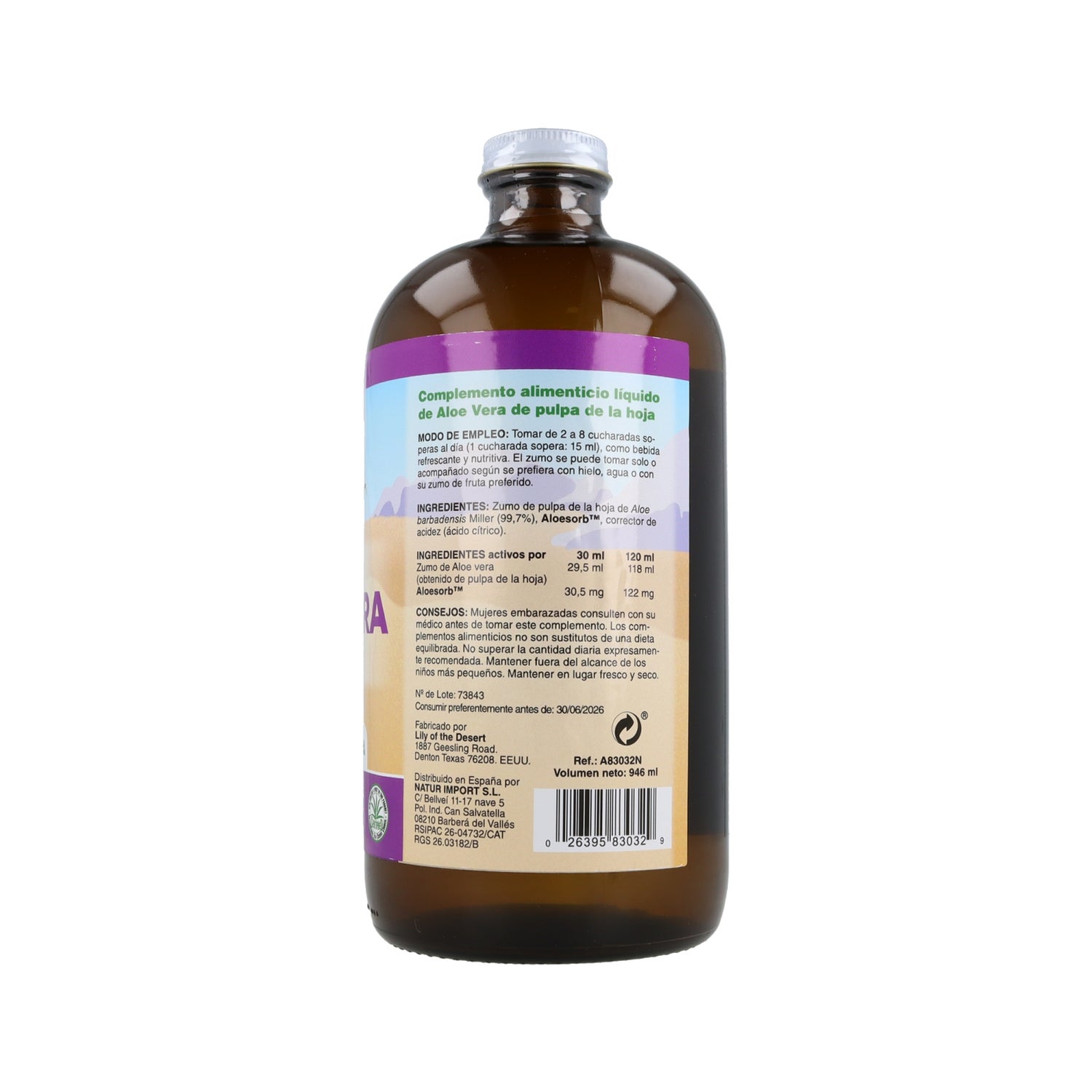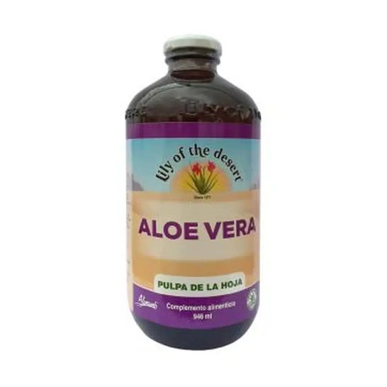 Lily Of The Desert Aloe Vera Pulp Leaf Glass 946ml is een voedingssupplement gemaakt van aloë vera pulp en bevat polysacchariden en organische zuren, zoals appelzuur.