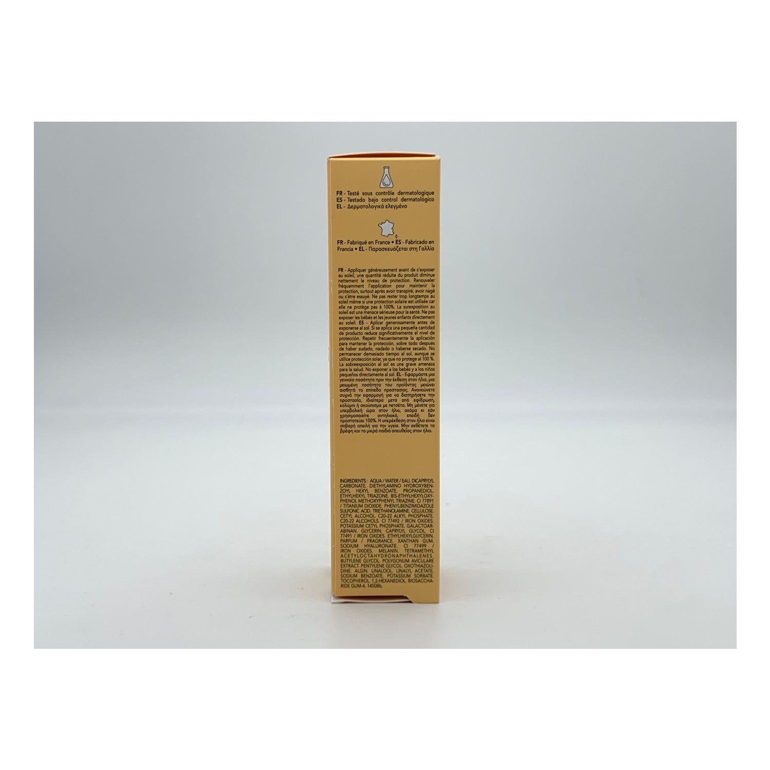 Aqua/Water/Eau, Dicaprylyl Carbonate, Diethylamino Hydroxybenzoyl Hexyl Benzoate, Propanediol, Ethylhexyl Triazone, Bis-Ethylhexyloxyphenol Methoxyphenyl Triazine, CI77891/Titanium Dioxide, Phenylbenzimidazole Sulfonic Acid, Triethanolamine, Cellulose, Cetyl Alcohol, C20-22 Alkyl Phosphate, C20-22 Alcohols, CI77492/Iron Oxides, Dimethicone, Glycerin, Galactoarabinan, Potassium Cetyl Phosphate, Caprylyl Glycol, CI77491/Iron Oxides, Ethylhexylglycerin, Parfum/Fragrance, Xanthan Gum, Butylene Glycol, Polysilicone-11, Sodium Hyaluronate, CI77499/Iron Oxides, Melanin, Polygonum Aviculare Extract, Oxothiazolidine, Algin, Pentylene Glycol, Sodium Benzoate, Potassium Sorbate, Tocopherol, Phenoxyethanol, Decyl Glucoside, Biosaccharide Gum-4, Hexylene Glycol, Acetyl Hexapeptide-1, Dextran.