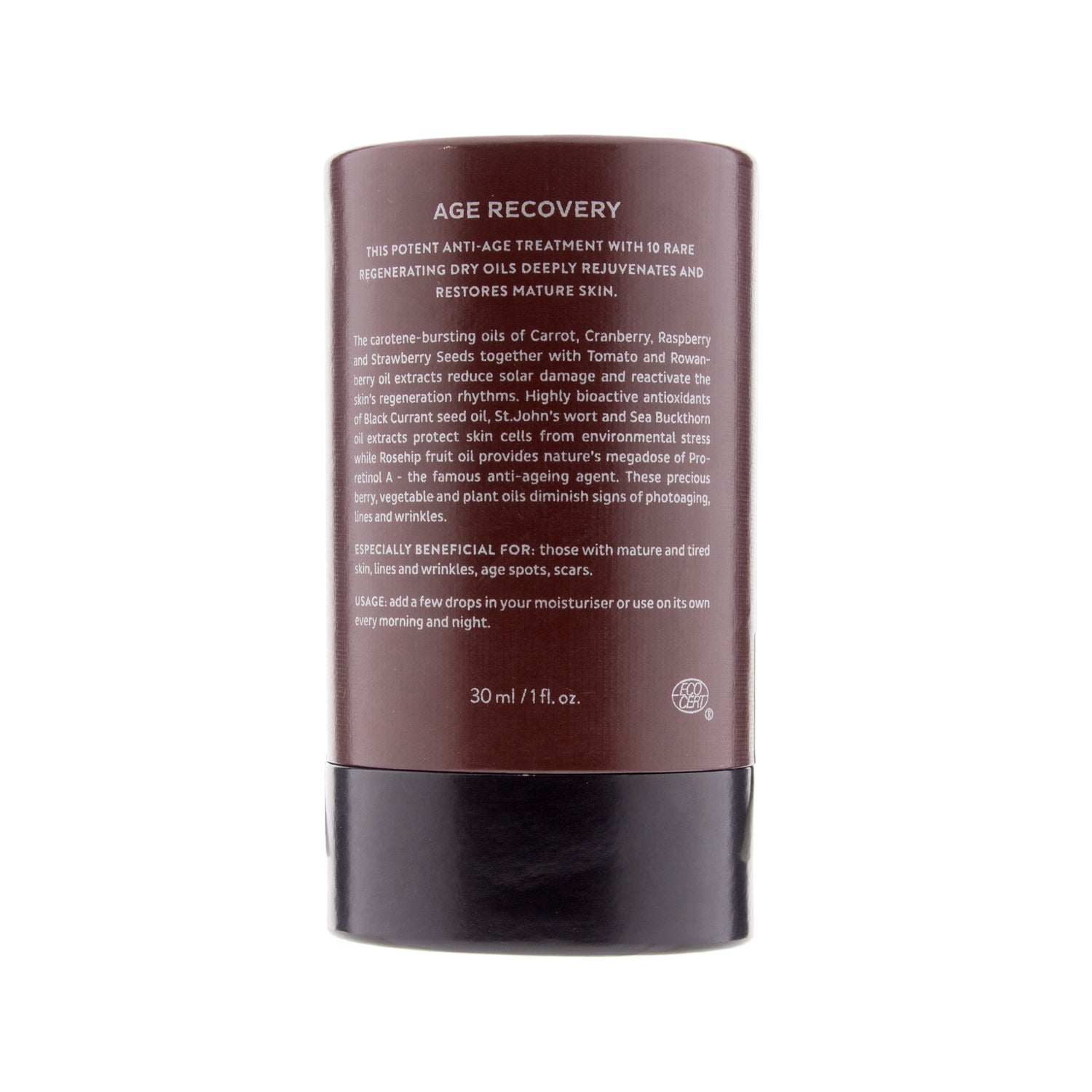 Dankzij de rijke formule met 10 droge oliën, zoals tomaat , wortelzaad , bosbessen , frambozen en aardbeien , verjongt dit anti-verouderingsserum en herstelt het je vermoeide veroudering van de huid . Bovendien biedt rozenbottelolie pro-retinol A , beroemd om zijn anti-verouderingsvermogen.
