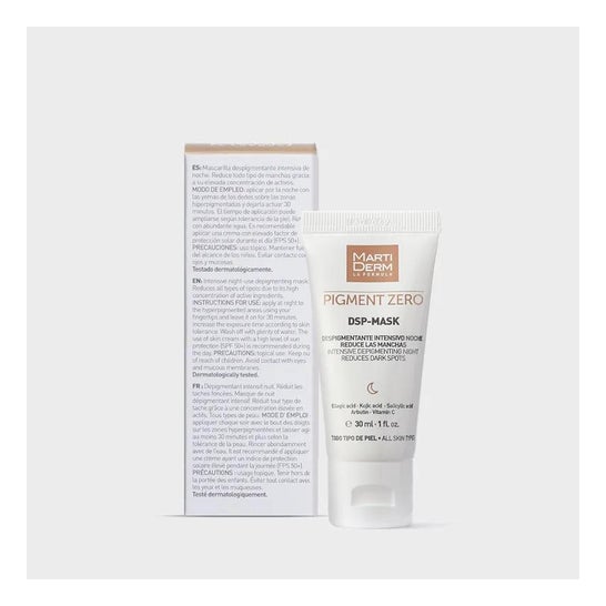 Het Pigment Zero DSP-masker is een depigmenterend masker dat is geïndiceerd om de huid snel te regenereren , dankzij de samenstelling op basis van salicylzuur dat werkt op de melanine die verantwoordelijk is voor donkere kleuring, zodat het zo werkt dat de vlekken verzwakken en zelfs verdwijnen .