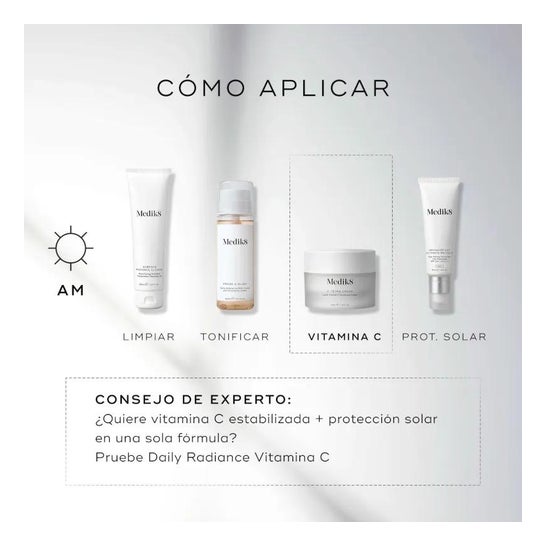 Geformuleerd met vitamines C en E, die helpen de antioxidante bescherming te versterken en de natuurlijke productie van collageen te bevorderen. Daarnaast bevat het hyaluronzuur, dat bijdraagt aan het verhogen van het vermogen om meer water in de huidcellen vast te houden, wat de voeding ten goede komt.