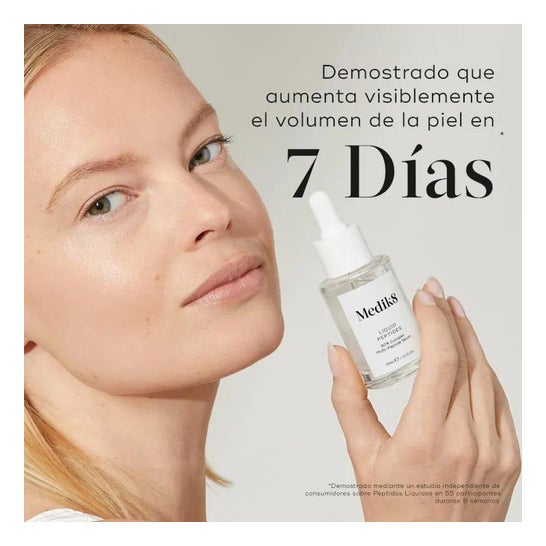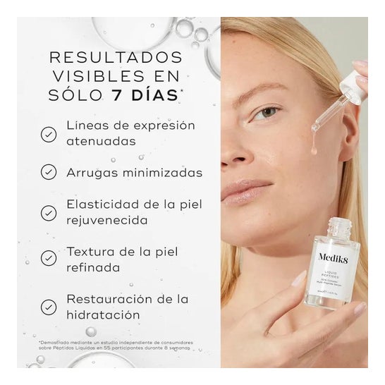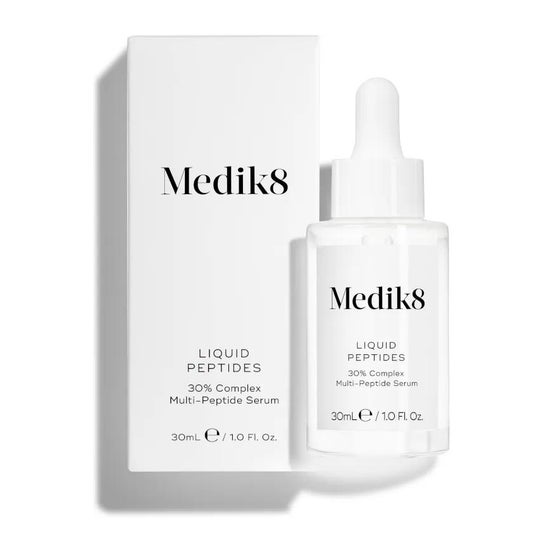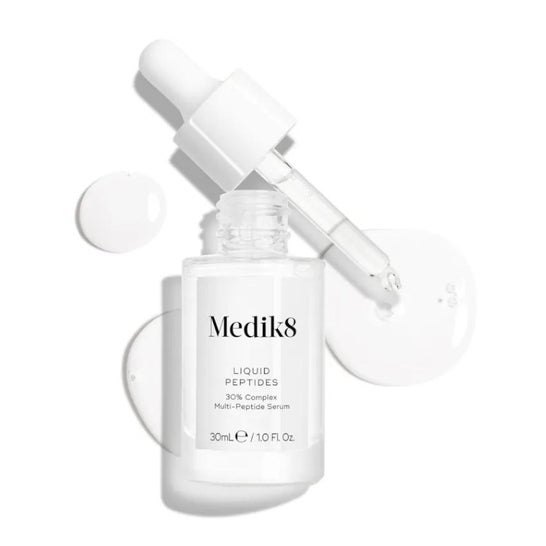 Medik8 Liquid Peptides is een ultra-hydraterend serum dat snel en moeiteloos in de huid doordringt. Het biedt de effecten van de beste anti-aging technologie. 30% van het serum bestaat uit peptiden die samenwerken aan de verjonging van de huid. Bovendien verhoogt het serum de natuurlijke reserves van hyaluronzuur. Samen met de collageen worden fijne lijntjes verminderd en de rimpels vervagen. Het resultaat is een huid die zeer zacht, extreem gehydrateerd en zichtbaar jonger is. Geen alcohol, parabenen of parfums.