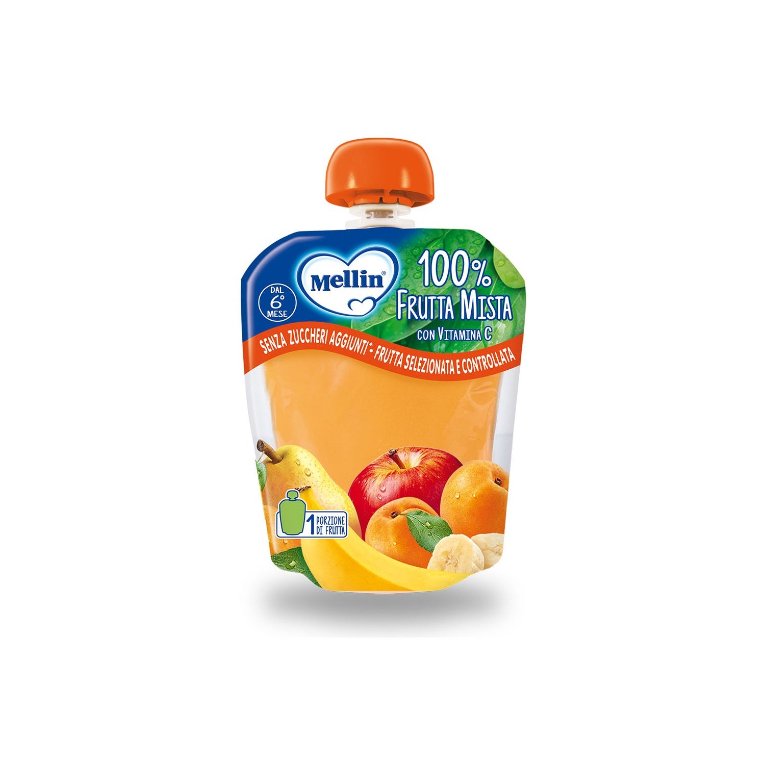 Mellin 100% Fruit Mix 90g is een babyvoeding vanaf de zesde levensmaand. Het is een fruitpuree zonder toegevoegde suikers, rijk aan vitamine C.