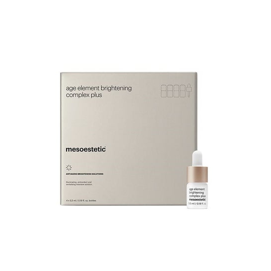 Mesoestetic Age Element Brightening Complex Plus 4x5.5ml is een intensieve behandeling die is ontworpen om antioxidante, revitaliserende en verhelderende eigenschappen aan de huid te bieden. Dit product wordt geleverd in een formaat van vier ampullen van 5,5 ml elk, wat een continue toepassing gedurende vier weken mogelijk maakt.