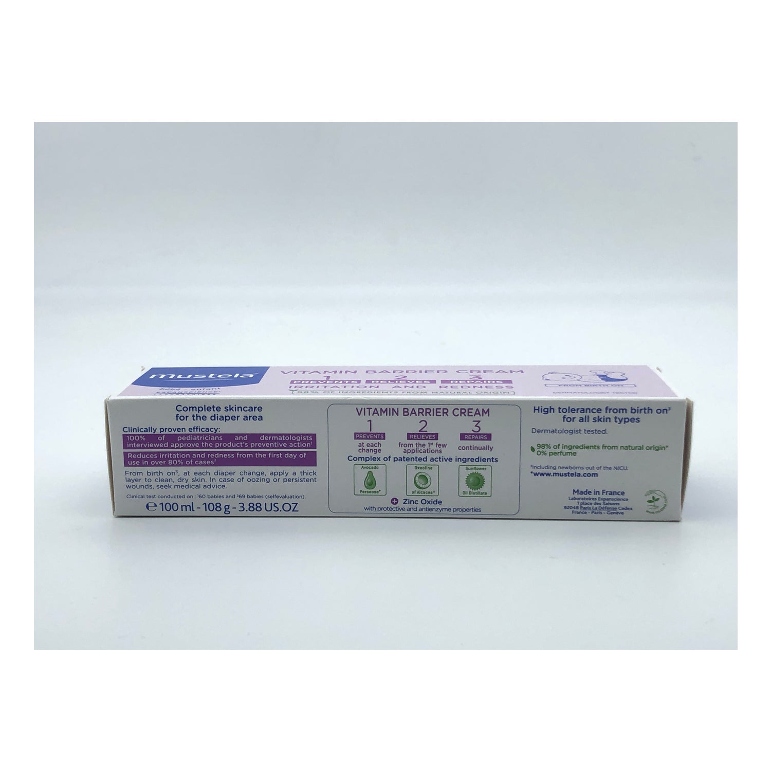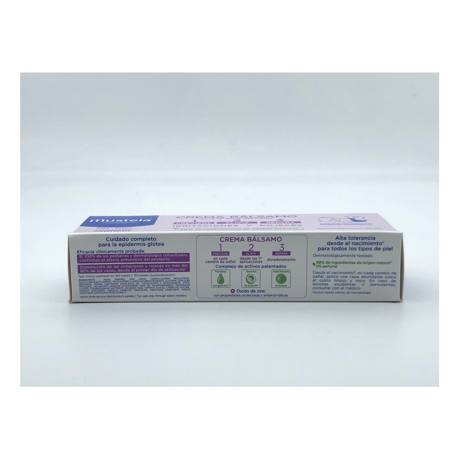 Het bevat ook zinkoxide , dat beschermende en anti-enzymatische eigenschappen heeft . 98% Mustela crème balsem 1 + 2 + 3 ingrediënten zijn van natuurlijke oorsprong, geen conserveringsmiddelen of parfums. Dus pak het de maximale tolerantie die het mogelijk maakt om je baby vanaf de geboorte te beschermen.