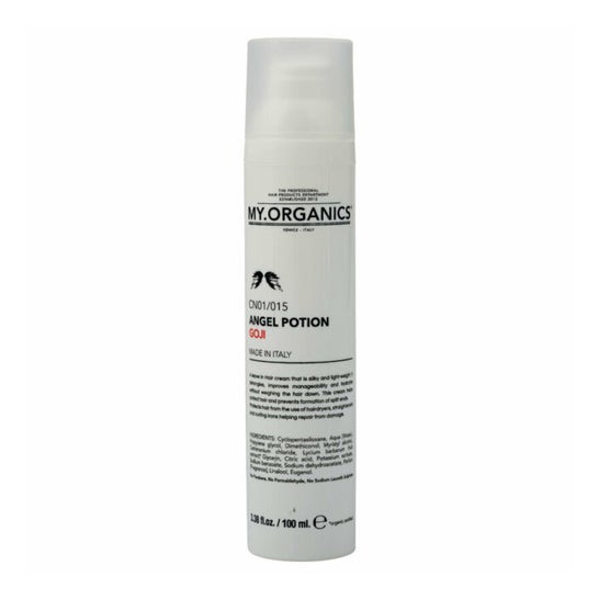 My.Organics Angel Potion 100ml is een haarbehandeling ontworpen om te repareren en te beschermen tegen dagelijkse slijtage. Dit product, dat in de vorm van een uitwasbare crème wordt gepresenteerd, is geschikt voor alle haartypes en biedt zachtheid, beheersbaarheid en weerstand tegen externe invloeden. Het is vooral voordelig voor beschadigd, droog of aan hitte van stylingtools blootgesteld haar.