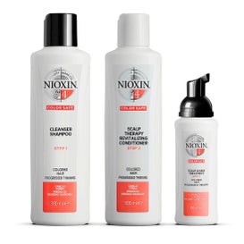 Haarverzorgingsset bestaande uit een Shampoo, Conditioner en Intensive Treatment uit het Nioxin-assortiment. Helpt het haar te reinigen, te versterken en te voeden en beschermt het tegelijkertijd tegen breuk en gespleten haarpunten. De ingrediënten hebben regenererende en verstevigende eigenschappen. Geschikt voor fijn of verzwakt haar.