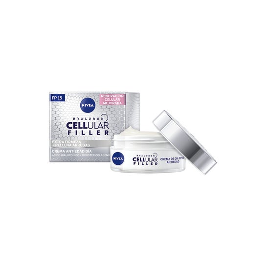 Nivea Hyaluron Cellular Filler Dagcrème SPF15 50ml is een anti-verouderingscrème met SPF15 zonnefilter die de celvernieuwing helpt te activeren