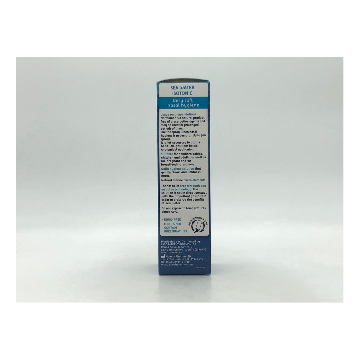 Normomar zeewater-neusspray is een behandeling op basis van zeewater, speciaal bereid met een reeks natuurlijke mariene micro-elementen die inwerkt op de neusholtes, waardoor hun hygiëne verbetert en allergenen, vervuiling, stof, vuil of pollen worden geëlimineerd.