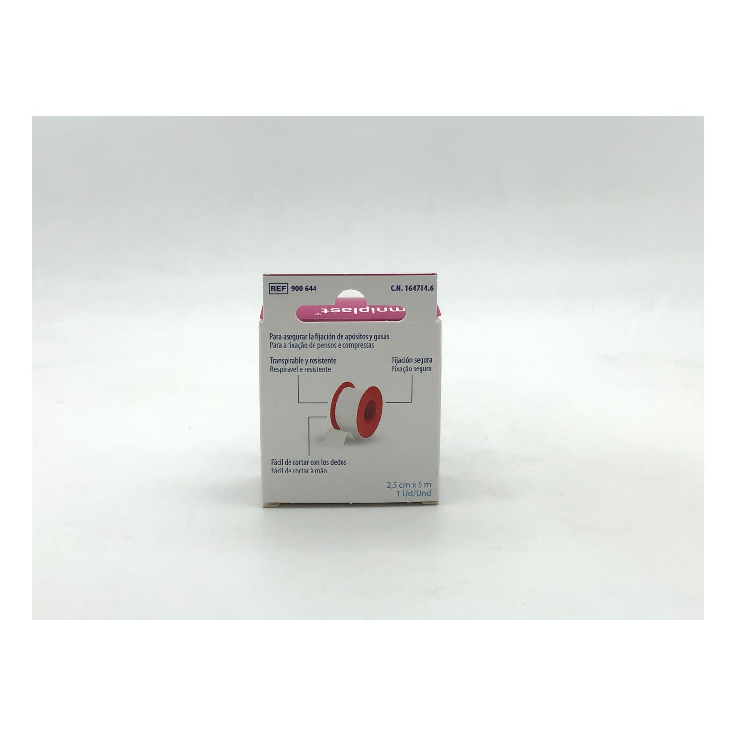 De rol tape van 5 meter lang bij 2,5 cm breed is gemaakt van synthetisch rubber met de exclusieve Omniplast-stof. Zeer resistent, het heeft een groot aanpassingsvermogen. Het is geschikt voor het vasthouden van verbanden op elk deel van het lichaam, inclusief gewrichten, omdat het zich goed aanpast aan mobiele zones . Het wordt ook gebruikt voor het vasthouden van sondes, canules, katheters en primaire verbanden. Het heeft een geweldige initiële fixatie . Het is hypoallergeen, ademend en kan zonder pijn worden verwijderd, waardoor er geen lijmresten op de huid achterblijven.