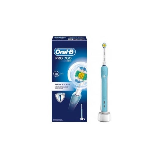 - Poetssysteem: pulserend en oscillerend om twee keer zoveel plak te verwijderen. - Druksensor voor optimale poetstechniek. - Poetsstanden: 1 (Schoon) - Professionele timer (4 x 30 seconden) voor de door tandartsen aanbevolen poetstijd. - Meegeleverde borstel: 1x 3D White voor dieptereiniging. - Oplader: mini - Oplaadindicator INFORMATIEOral B's pro 700 3D white & clean is de elektrische tandenborstel die het meest wordt aanbevolen door tandartsen. Hij maakt de tanden op natuurlijke wijze witter in 2 weken. Hij is ontworpen voor tand- en tandvleeshygiëne.