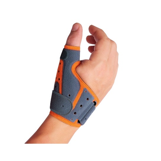 Orthese die helpt het gewricht te stabiliseren bij rhizartrose. Het is gemaakt met een dubbele injectie van materialen met verschillende stijfheidsniveaus, die bijdragen tot de stabilisatie en positionering van de duim, waardoor de rest van de vingers vrij kan bewegen.