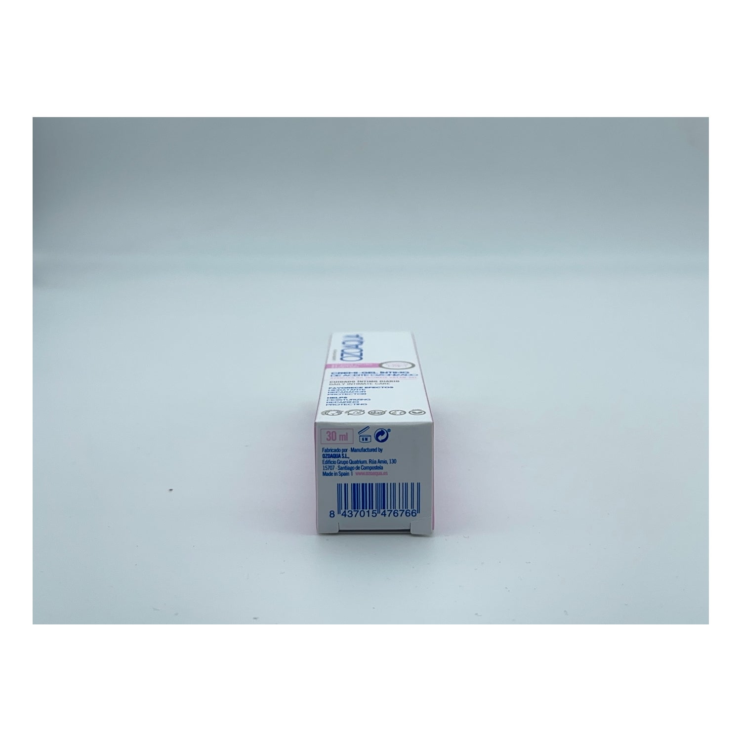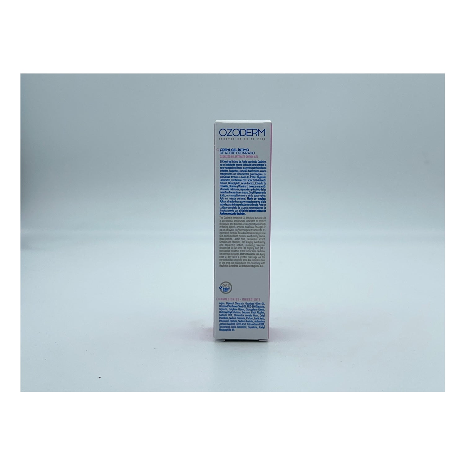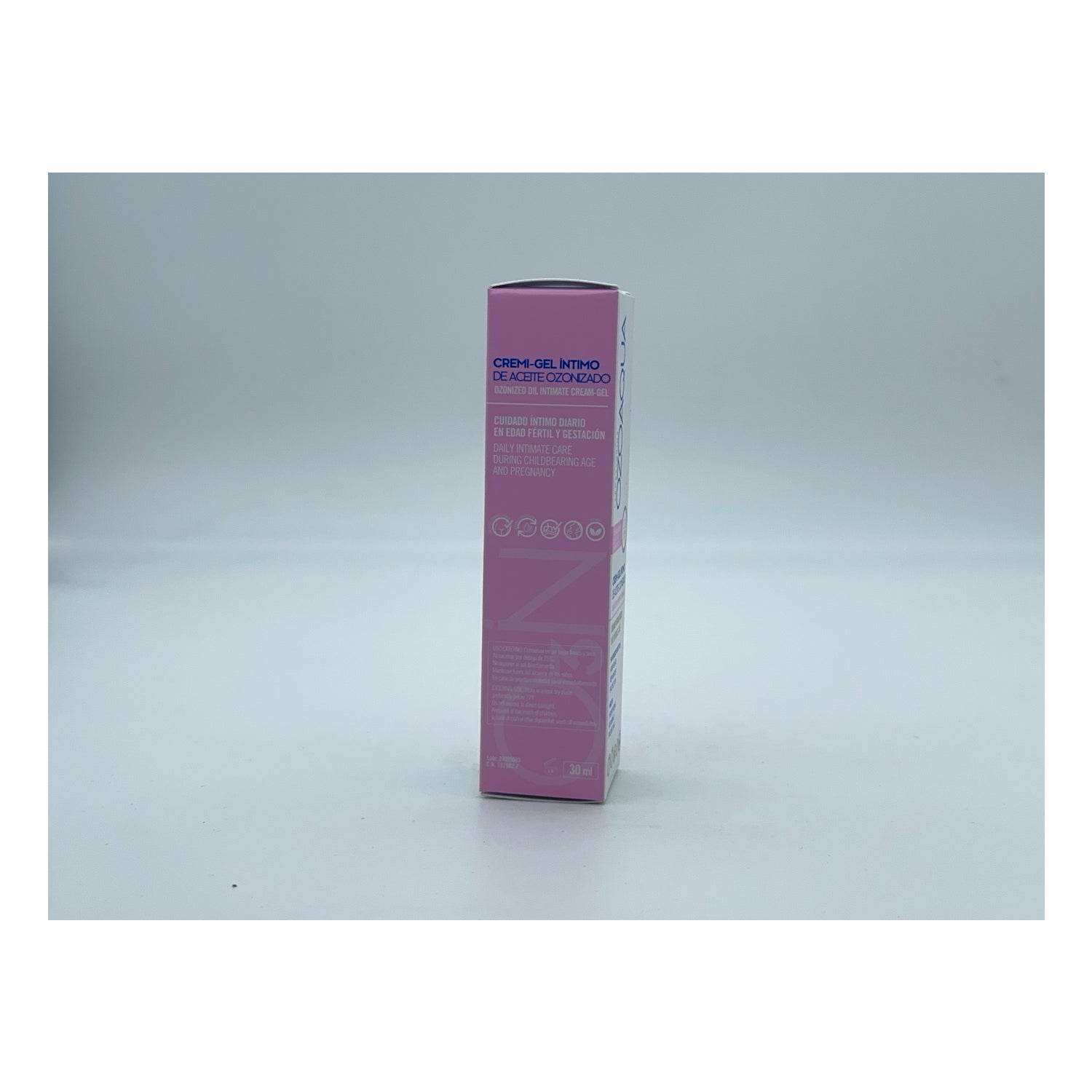 Hygiënische oplossing voor de vrouwelijke intieme zone op basis van ozon, geschikt voor dagelijks gebruik en met een aangename crème-gel textuur, die helpt bij het beschermen en bevorderen van het welzijn van de vulvo-perineale zone tegen mogelijk irriterende stoffen.