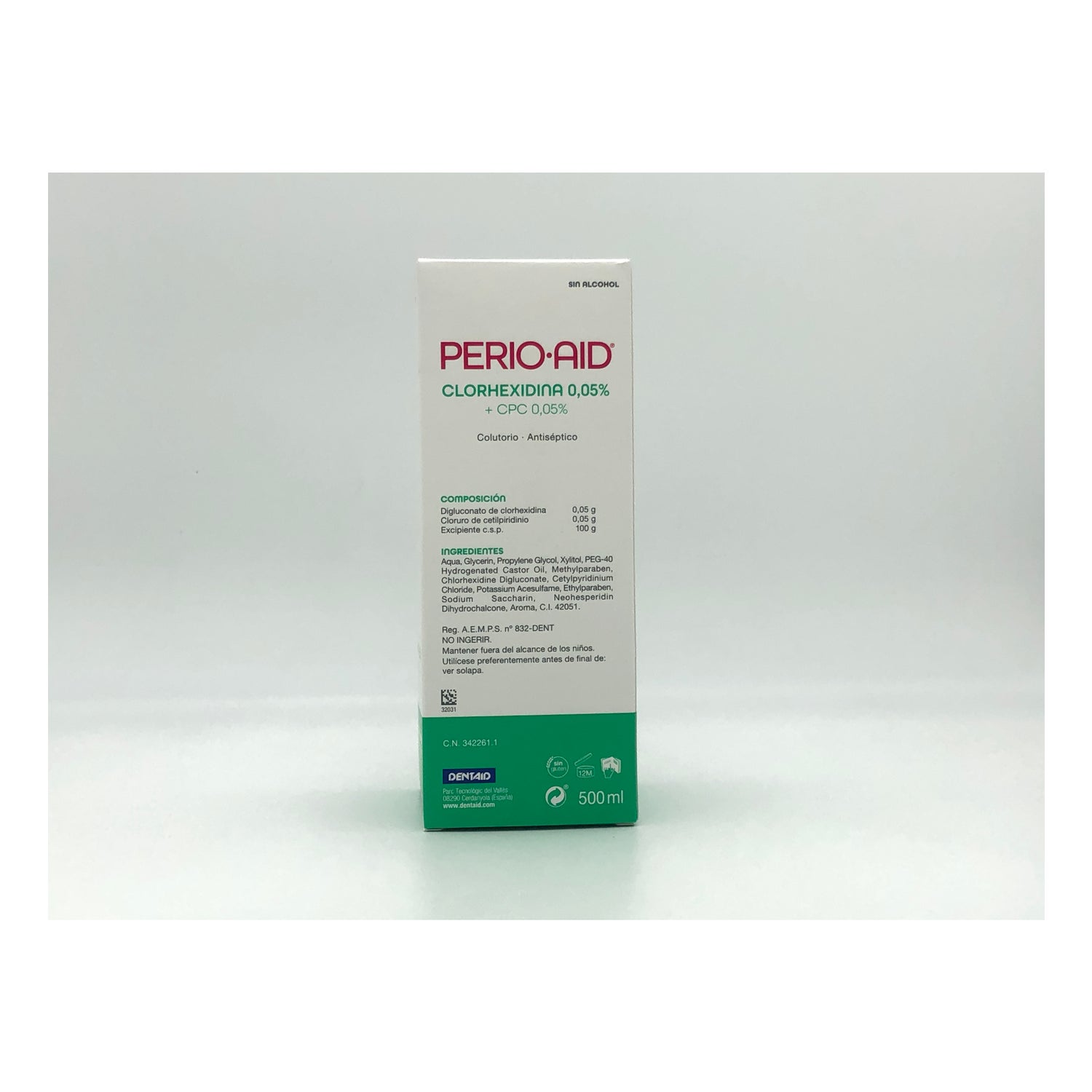 De Perio-Aid onderhoud en controle mondwater 0,05% chloorhexidine presenteert een specifieke formule op basis van chloorhexidine en cetylpyridine chloride , twee elementen die zorgen voor maximale controle over de vorming van bacteriële plaque of cariës.
