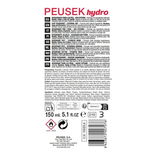 Dankzij het spray-formaat van Peusek Hydro, kunt u zich bovendien op een comfortabele en directe manier tegen de transpiratie van geuren beschermen. Over enkele seconden worden uw voeten beschermd!