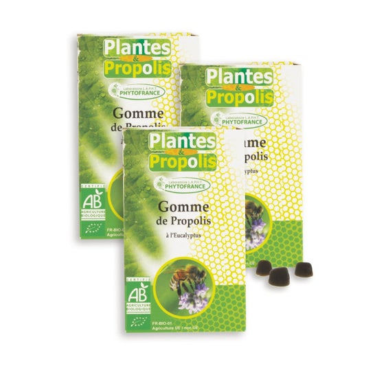 Kauwbare propolis-snoepjes die bijdragen aan de inname van de gunstige eigenschappen voor de mond, keel en het lichaam. Propolis is een natuurlijke stof die bekend staat om zijn antibacteriële, antivirale en immuunstimulerende eigenschappen. Bovendien heeft het een helende, ontstekingsremmende en pijnstillende werking die helpen bij het verlichten van keelpijn. De samenstelling van deze kauwbare snoepjes is 100% natuurlijk en afkomstig uit de biologische landbouw. Een vleugje honing en een paar druppels eucalyptus-essentiële olie zorgen ervoor dat de effectiviteit nog groter is.