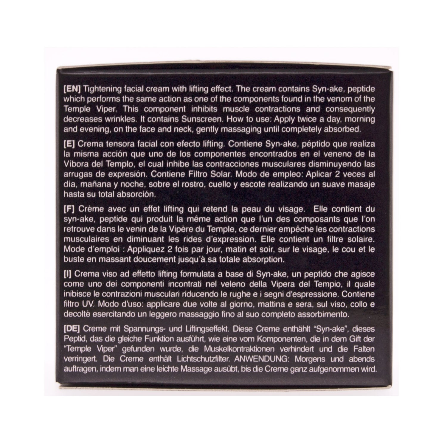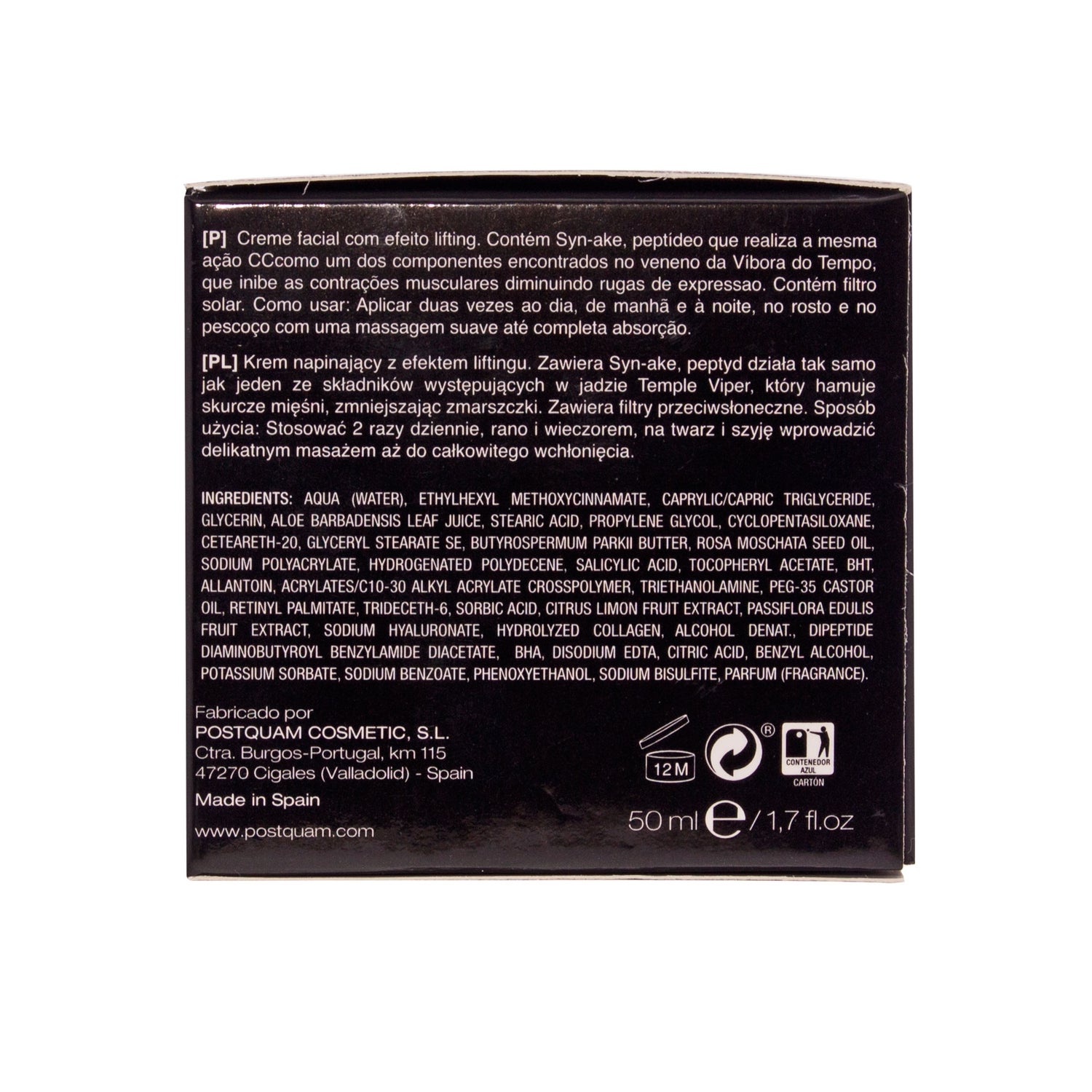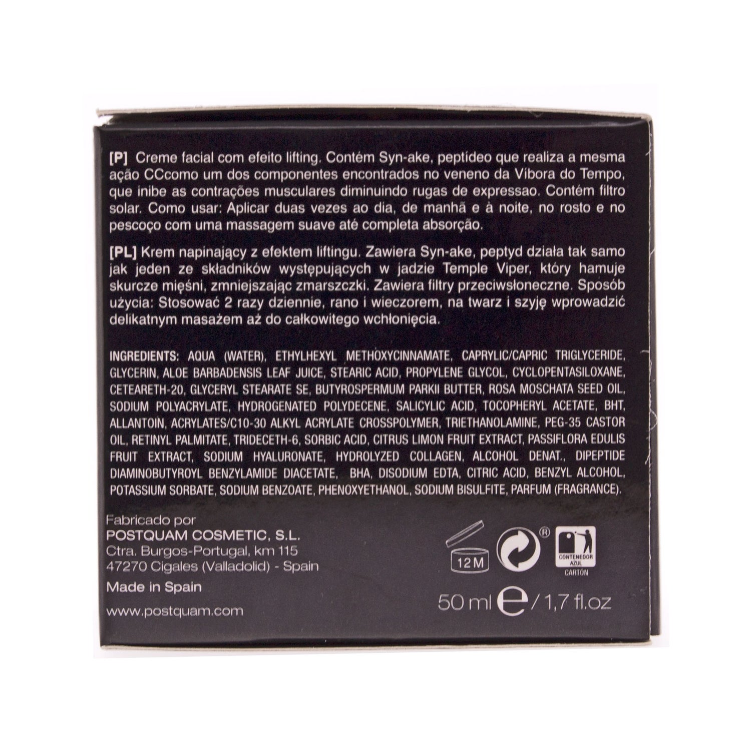 De gezichtscrème Renergie Syn-ake van Postquam vermindert rimpels en / of tekenen van gezichtsuitdrukking intens . Het is een hefcrème met liftend effect op basis van Syn-ake, een revolutionair onderdeel dat effectief werkt tegen huidonvolkomenheden.