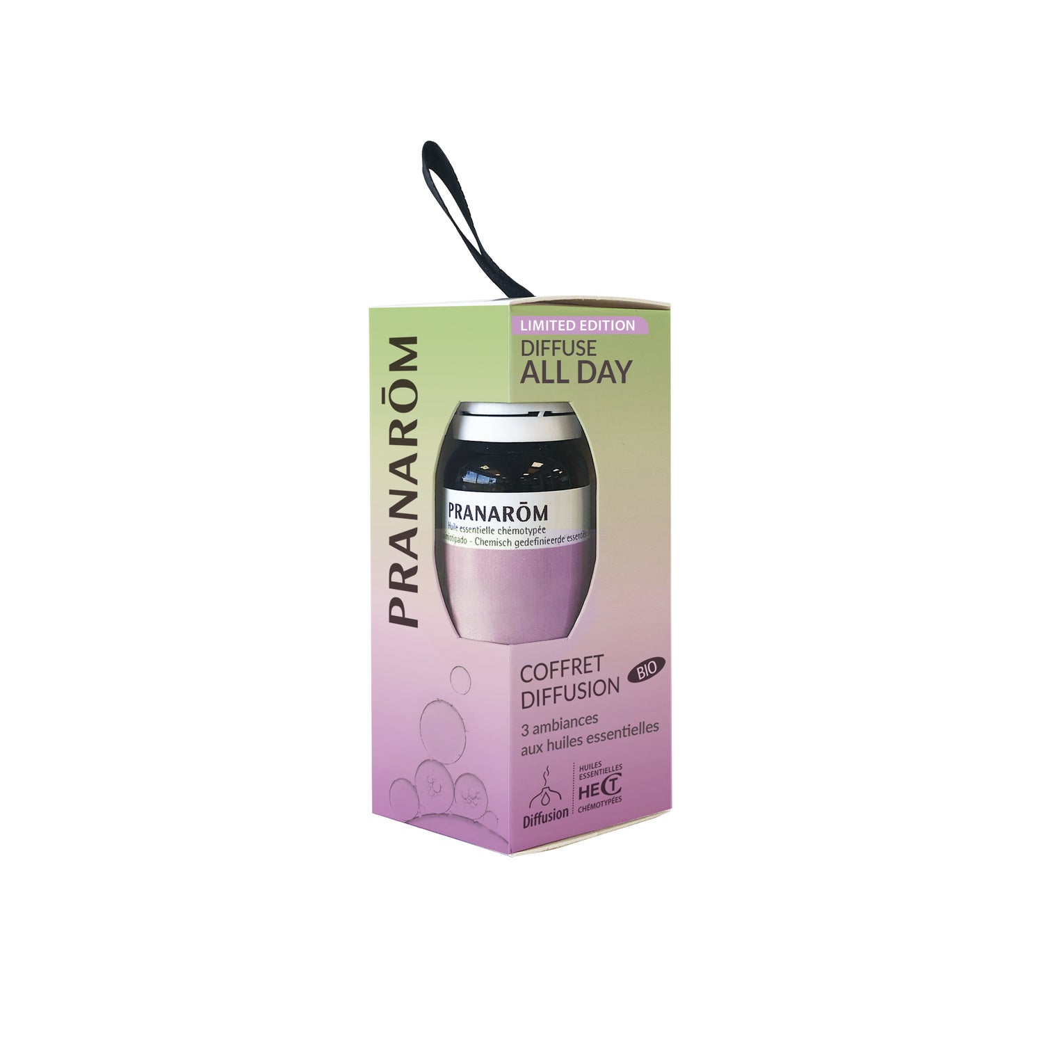 Het laboratorium Pranarôm is al meer dan 30 jaar in ontwikkeling en is vandaag de dag de onbetwiste expert in innovatieve oplossingen op basis van 100% natuurlijke BIO essentiële oliën, 100% puur (niet gemengd met oliën van inferieure kwaliteit) en 100% integraal (niet veranderd, niet ontkleurd, niet gerectificeerd), om op een andere manier voor jezelf te zorgen. Pranarôm garandeert toegang tot de beste essentiële oliën dankzij een zorgvuldige selectie van grondstoffen en een rigoureuze wetenschappelijke benadering. Spijsvertering, ademhaling, stimulatie van het immuunsysteem, moederschap... De oplossingen van Pranarôm bieden specifieke antwoorden op alle gebieden van de gezondheid en zijn aangepast voor het hele gezin. De Diffuse All Day-kist bevat 3 synergiën van essentiële oliën die klaar zijn om te diffuseren — Wake Up, Refresh & Night — om je dag te begeleiden en ritme te geven.