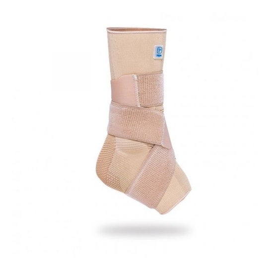 Prim Aqtivo Skin Enkelbandage met Band 8 P706BG S 1 Eenheid is een elastische enkelbandage met siliconen malleolus pads en een 8-vormige bandage.