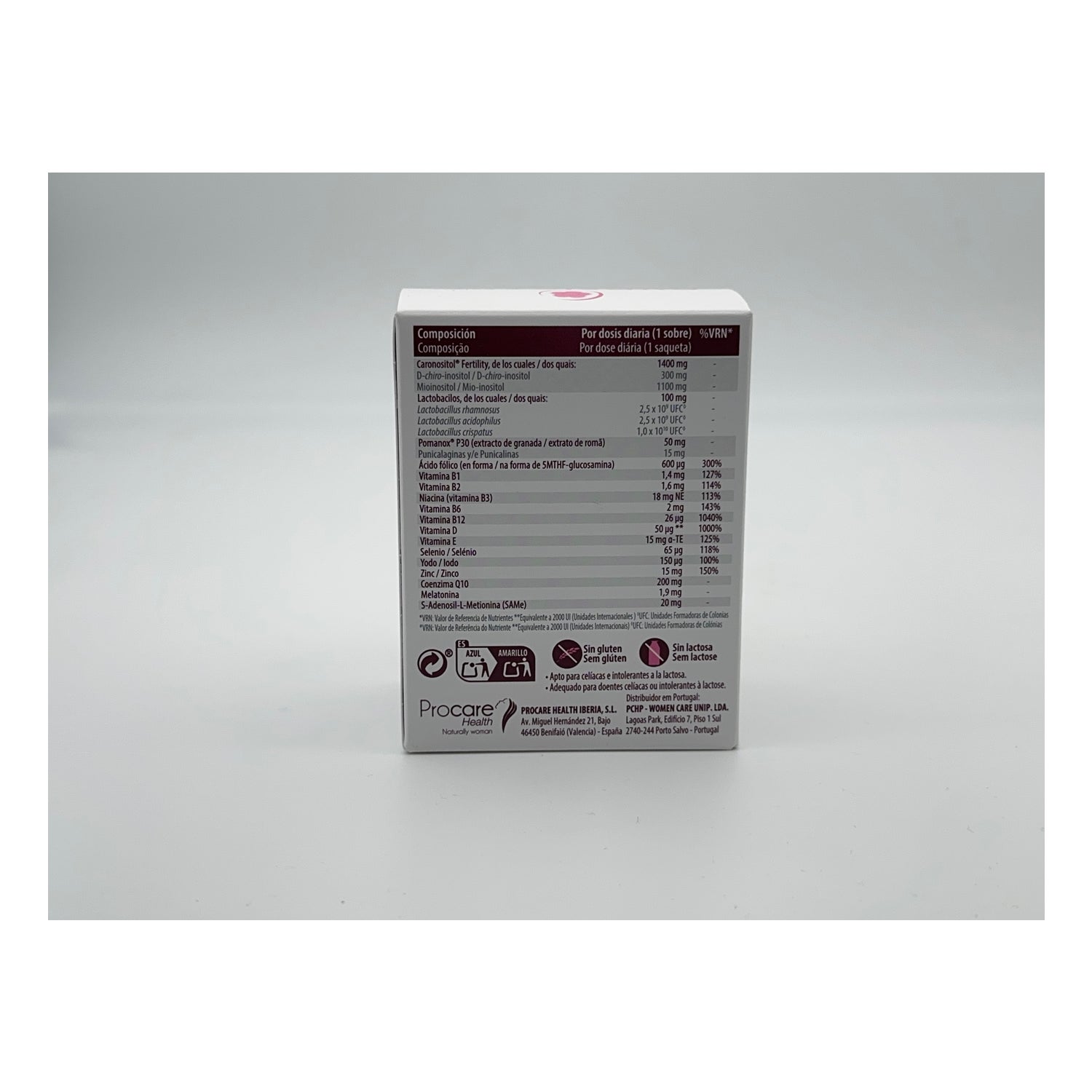 Voedingssupplement dat helpt te voorzien in de voedingsbehoeften van vrouwen in de vruchtbare leeftijd. Draagt bij tot de instandhouding van een normale reproductieve gezondheid en tot de bescherming van de vruchtbaarheid. Bevat probiotica, lactobacillen, granaatappelextract, selenium, jodium, zink, co-enzym Q10, melatonine, vitamine B1, B2, B3, B6, B12, D en E. Met een complex genaamd Quatrefolic®, met foliumzuur dat een goede weefselvorming bevordert. Gluten-, lactose- en suikervrij.